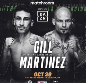 Su rival es el inglés Jordan Gill, que conquistó el título EBU de las 126 libras contra el francés Karim Guerfi, una pelea donde Gill estaba recibiendo un gran castigo de su rival, fue uno de los llamados “Lucky Punch” el que lo salvó de una derrota, la cuestión es que Gill es de todos menos un pegador, su récord de 27 victorias solo tiene 8 victorias antes del límite, a esto se añade a su registro una derrota y un empate técnico.